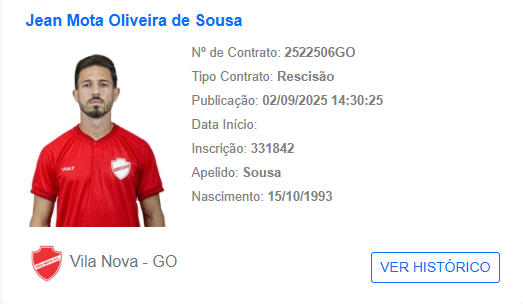 Vila Nova tem rescisão com Jean Mota publicada, porém, resultado é outro